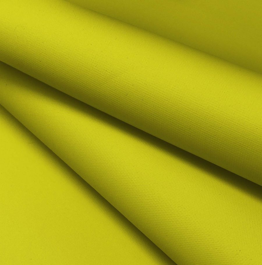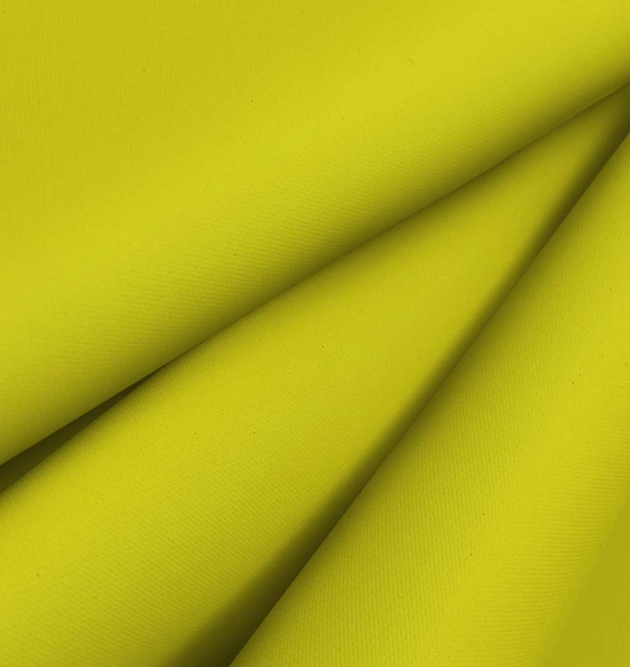 La tela base es la Tela Impermeable - Outdoor, un tejido técnico compuesto por un 100% de poliéster con un gramaje de 200 gr/m2 y un ancho de 150 cm. Su color liso impreso es un amarillo plátano, que se logra mediante la técnica de sublimación con los siguientes valores de CMYK: 21 6 94 0. Este color amarillo plátano tiene un carácter alegre y energético, y se puede combinar con colores neutros como el gris o el blanco para lograr un aspecto más sofisticado y elegante, o con tonos complementarios como el morado o el azul para crear contrastes más vibrantes.