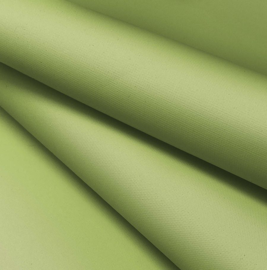 La tela base es la Tela Impermeable - Outdoor, un tejido técnico compuesto por 100% poliéster con un gramaje de 200 gr/m2 y una anchura de 150 cm. Es un tejido impermeable y resistente gracias a su textura granulada y rugosa, que además, le otorga una opacidad visual. En cuanto al color, está impreso en un verde pistacho con un CMYK de 39 5 72 0, que se combina armoniosamente con tonos similares y con colores más intensos y oscuros para crear contrastes en la decoración o en la moda. La tela está impresa en una sola cara mediante impresión digital textil, lo que garantiza una alta calidad de imagen y una durabilidad en el color.