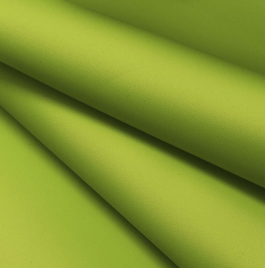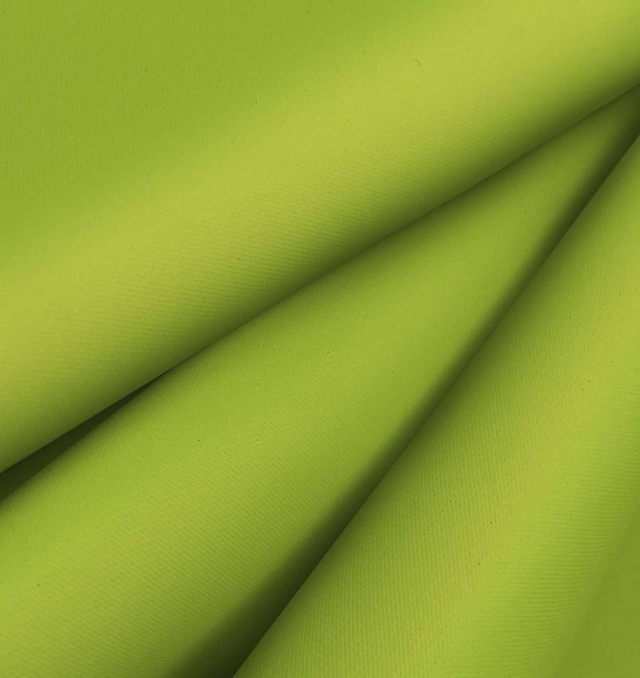 La tela base es Tela Impermeable Outdoor, un tejido técnico compuesto al 100% de poliéster con un gramaje de 200 gr/m2 y un ancho de 150 cm. El color liso impreso es un verde pistacho cuya fórmula CMYK es 49 8 94 0. Este color secundario simboliza la vitalidad, la esperanza y la naturaleza. Combina perfectamente con otros tonos de verdes, amarillos y blancos, evocando la frescura y el dinamismo.