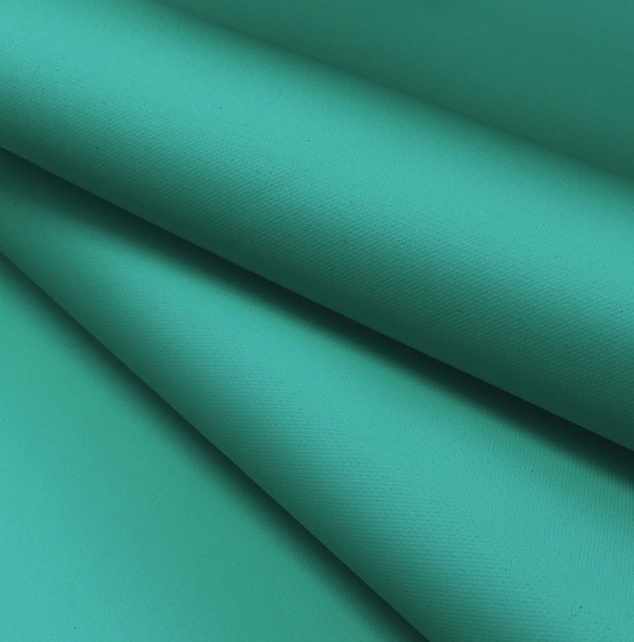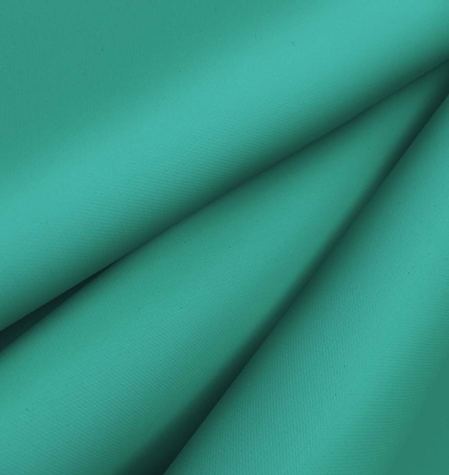 La tela base es la Tela Impermeable - Outdoor, un tejido técnico compuesto en su totalidad de poliéster con un gramaje de 200 gr/m2 y un ancho de 150 cm. Su color liso impreso es de un tono verde menta, el cual se logra mediante la tecnología de impresión por sublimación con los siguientes valores CMYK: 75 15 55 2. Este color es un tono fresco que evoca la naturaleza, la primavera y la suavidad.