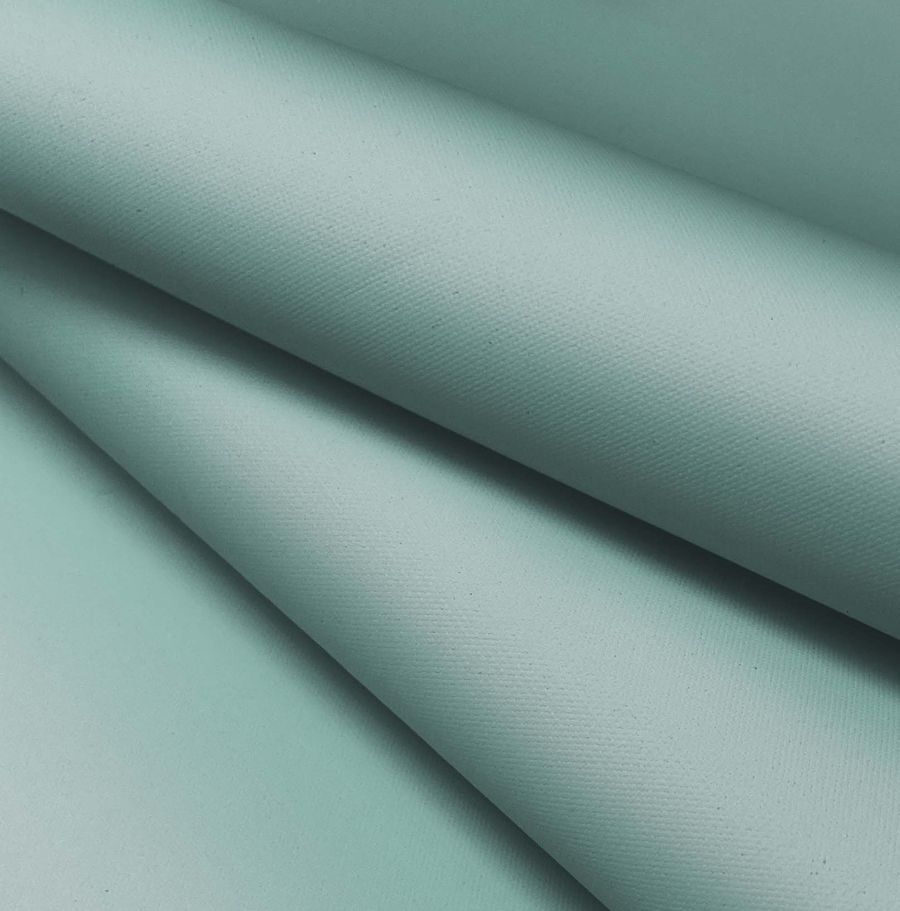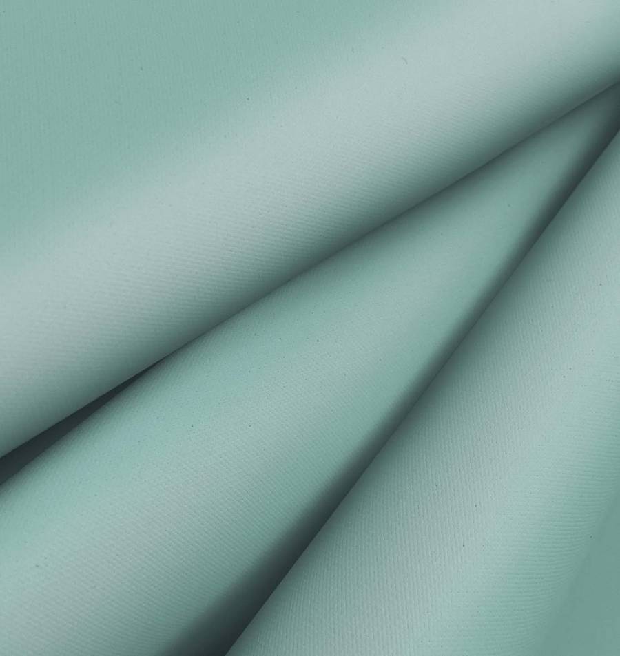 La tela base de esta impresión digital textil es la Tela Impermeable - Outdoor, un tejido técnico compuesto al 100% de poliéster, con un gramaje de 200 gr/m2 y un ancho de 150 cm. El color liso impreso es un verde azulado con una combinación de tintas de 50% de cyan, 10% de magenta y 32% de yellow. Este tono se asemeja al color del mar en una zona tropical, lo que aporta una sensación de calma y serenidad. Este color combina muy bien con otros colores similares como el turquesa, el azul o el verde.