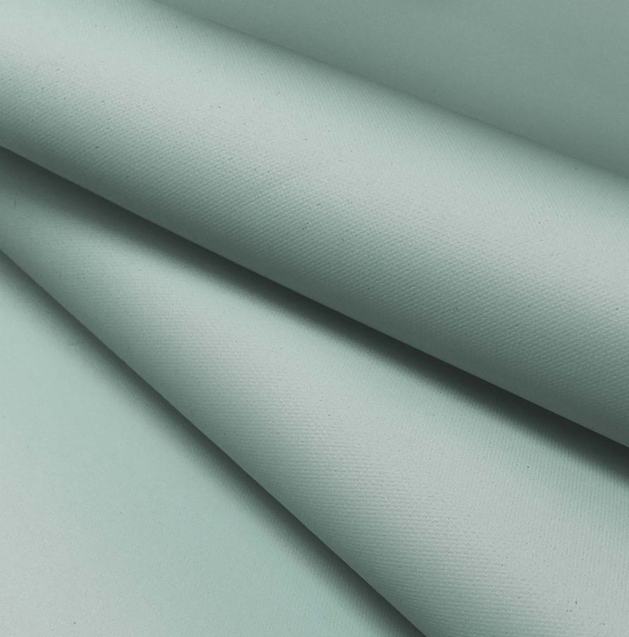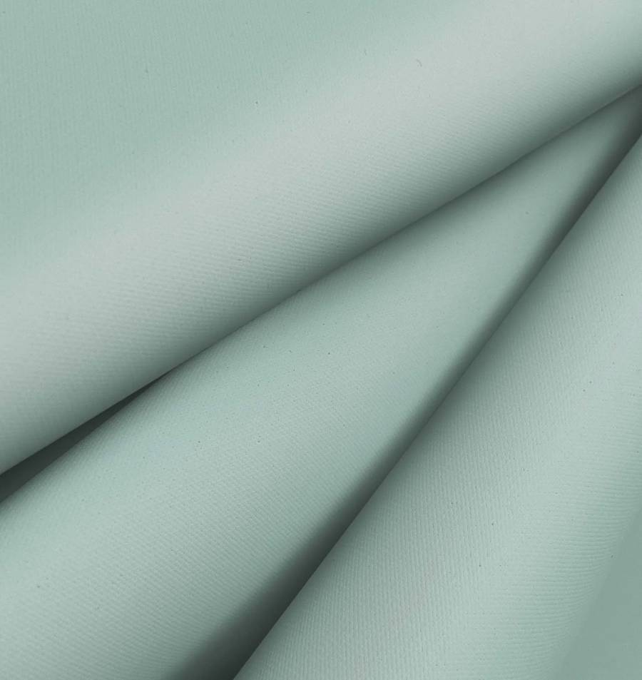La tela base es la Tela Impermeable - Outdoor, compuesta por 100% POLIÉSTER, con un gramaje de 200 gr/m2 y un ancho de 150 cm. El color liso impreso es una variante de Verde Azul, que se obtiene a través de la combinación de 40 de tinta Cyan, 7 de tinta Magenta, 29 de tinta Yellow y 0 de tinta Black, correspondientes al CMYK 40 7 29 0. Esta tonalidad luce como un verde azulado suave, con una calidad de textura granulada y rugosa que resulta atractiva a la vista y al tacto. Este color secundario combina a la perfección con tonalidades neutras, como blancos o grises, así como con colores terrosos.