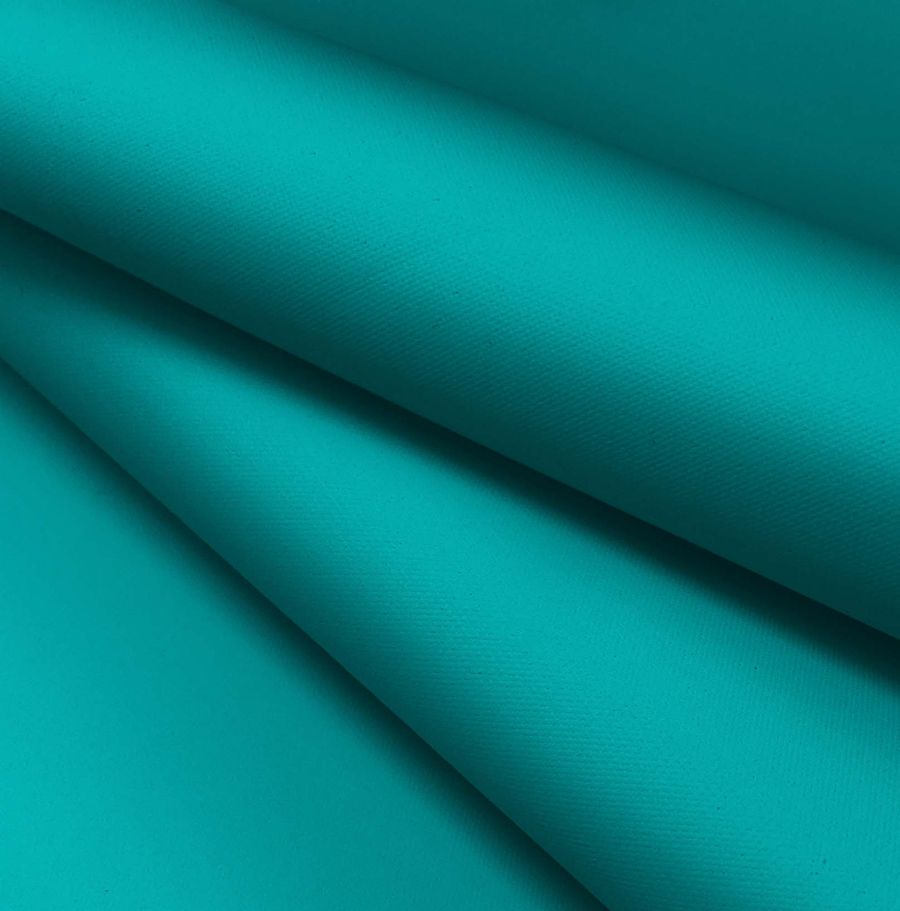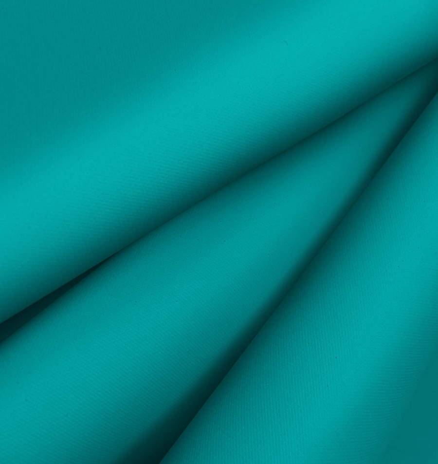 La tela base, Tela Impermeable - Outdoor, es un tejido técnico de 100% POLIÉSTER con un gramaje de 200 gr/m2 y un ancho de 150 cm. Posee un acabado impermeable y una textura granulada y rugosa que le da un tacto especial. El color liso impreso es un vibrante verde DarkCyan, cuyo CMYK es 81 22 44 5, compuesto principalmente por tinta Cyan y Yellow. Este color combina perfectamente con diferentes tonos de azul y amarillo, y se puede combinar con colores más neutros como grises o blancos para obtener un contraste equilibrado. La tela está impresa a una sola cara por impresión digital textil, lo que significa que no es un tejido tintado sino impreso.