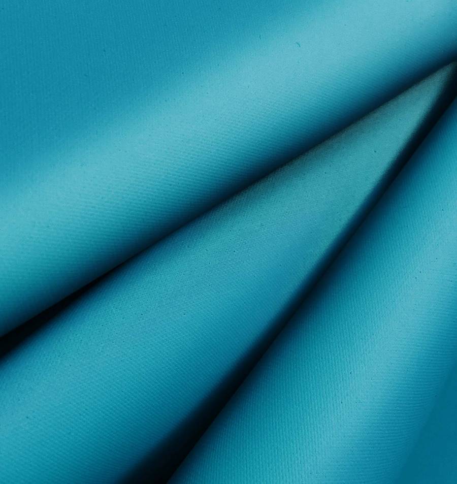 La tela base está impresa con el color liso a una sola cara por impresión digital textil, lo que significa que no es un tejido tintado sino impreso por una sola cara. La tela tiene acabado impermeable, textura granulada y rugosa, así como un aspecto opaco. El color liso impreso tiene gran definición y durabilidad en el tiempo, gracias a la tecnología de impresión por sublimación.