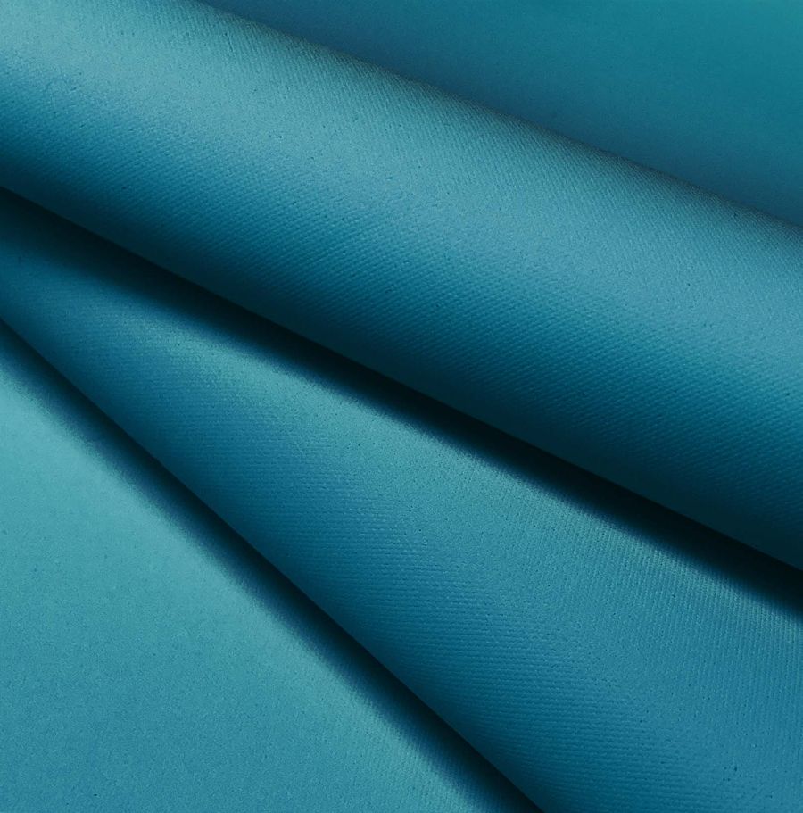 La Tela Impermeable - Outdoor, de tejido técnico y composición 100% POLIÉSTER, tiene un gramaje de 200 gr/m2 y ancho de 150 cm. El color liso impreso es un hermoso azul Hosta, representado por un CMYK de 84 34 34 14. Este color secundario simboliza la tranquilidad y la serenidad y combina perfectamente con tonos neutros como el blanco y el gris, así como con otros tonos de azul y verde.