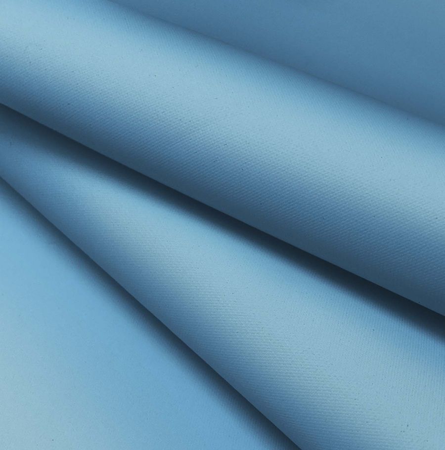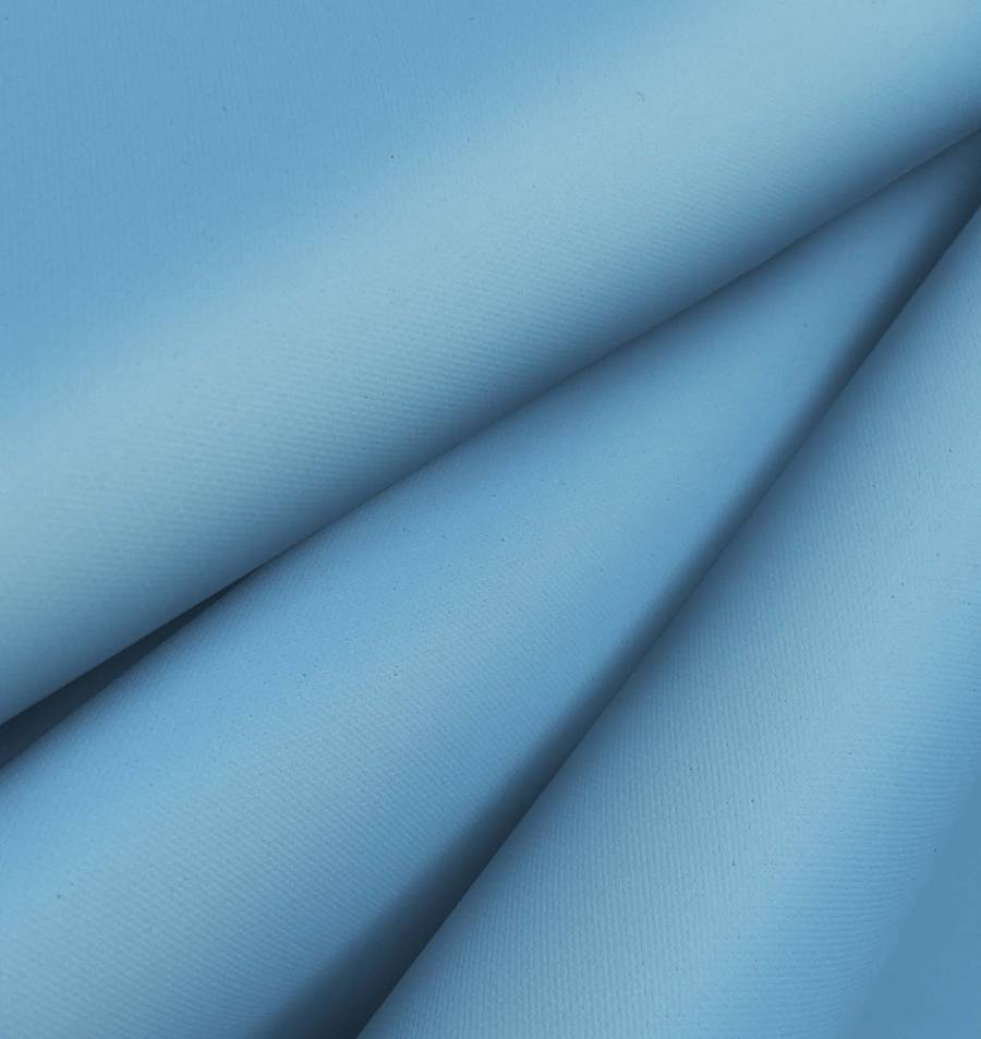 La tela base de este tejido es la Tela Impermeable - Outdoor, un tejido técnico compuesto al 100% de POLIÉSTER con un gramaje de 200 gr/m2 y un ancho de 150 cm. Su color liso es Azul seda, un tono suave y delicado que se obtiene de una combinación de la tinta Cyan (60), Magenta (20), Yellow (1) y Black (0) con un valor CMYK de 60 20 1 0. Es importante destacar que la tela base está impresa con este color liso a una sola cara por impresión digital textil, lo que significa que no es un tejido tintado sino impreso por una sola cara.