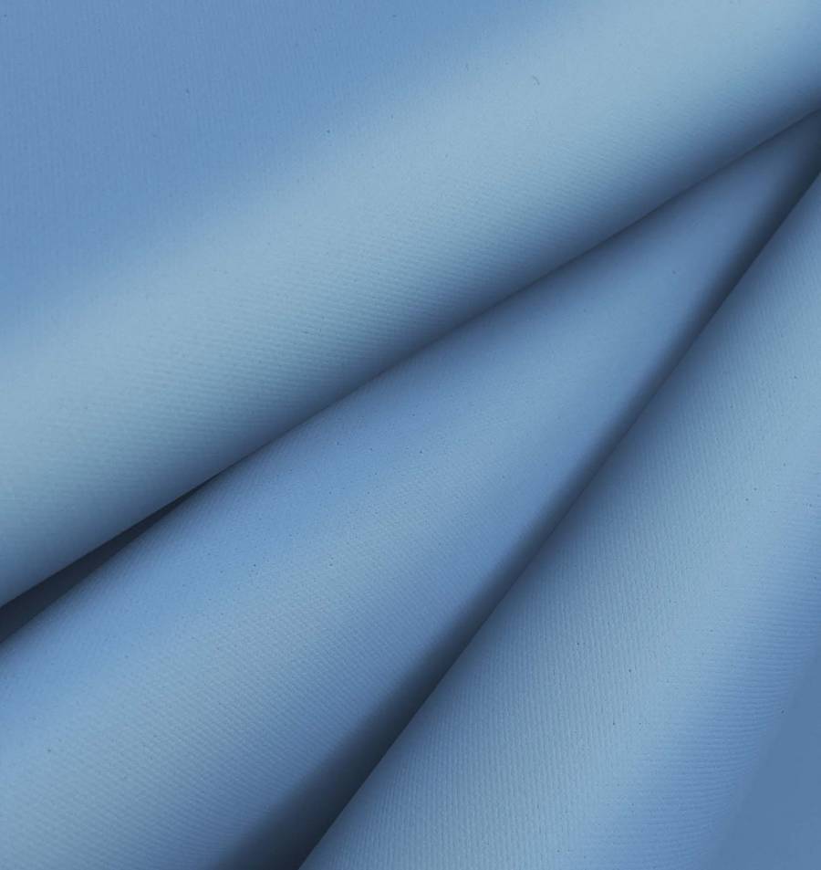 La Tela Impermeable - Outdoor es un tejido técnico compuesto 100% de poliéster. Su gramaje de 200 gr/m2 y ancho de 150 cm lo convierten en una elección ideal para diversas aplicaciones como moda, deporte, decoración y textil hogar, entre otras. El color de la tela base es blanco. Impreso con tecnología de sublimación, el color liso de la tela es Azul Iceberg con un CMYK de 62 33 3 0.