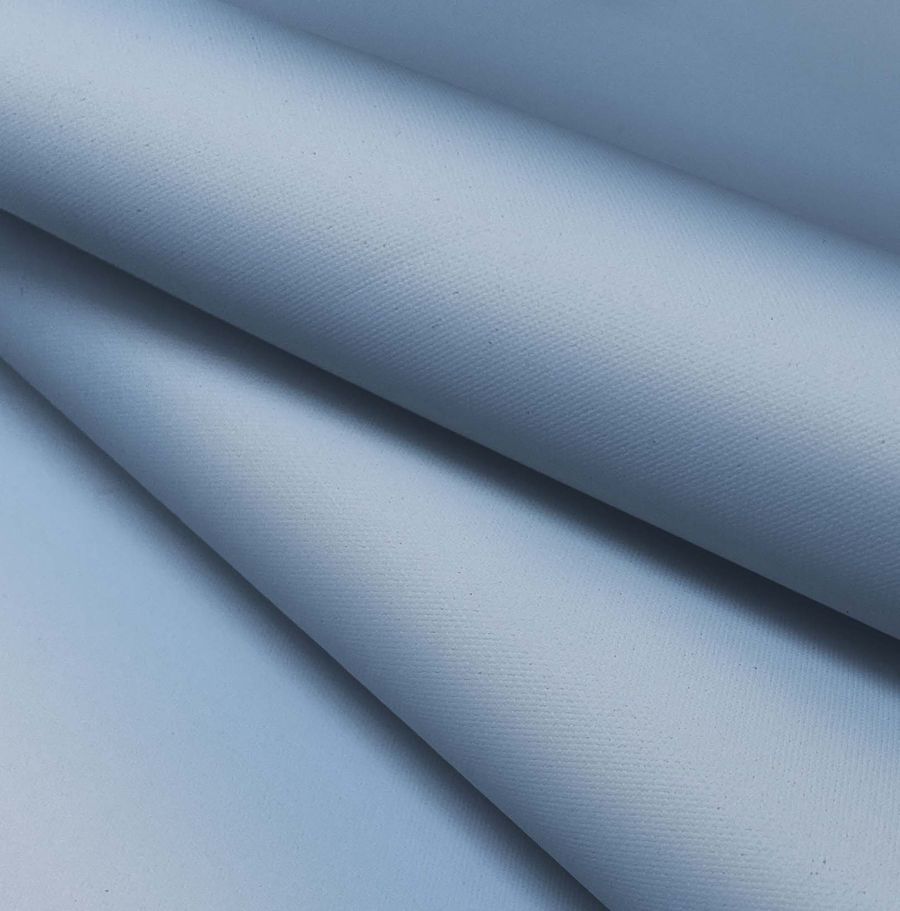 La tela base de este tejido es la Tela Impermeable - Outdoor, compuesta por 100% poliéster y con un gramaje de 200 gr/m2. Su ancho de 150 cm y sus características impermeables la hacen ideal para usos exteriores, como protección contra la lluvia o para la confección de chubasqueros. El color liso impreso en esta tela es un azul violeta claro, cuyo CMYK es 48 22 3 0, con una predominancia del tinta Cyan que le da un tono azulado. Este color combina muy bien con otros tonos de azul, blanco y gris.