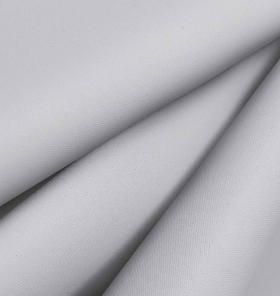 La tela base es la Tela Impermeable - Outdoor, un tejido técnico 100% poliéster de 200 gr/m2 con una anchura de 150 cm. La tela es impermeable y posee una textura granulada y rugosa, que le da un efecto visual opaco. Este tejido está impreso con un color liso en tonalidades de gris y Gainsboro. El color está compuesto por un 16% de tinta cyan, un 11% de tinta magenta, un 11% de tinta yellow y un 0% de tinta black, lo que nos da un CMYK de 16 11 11 0.