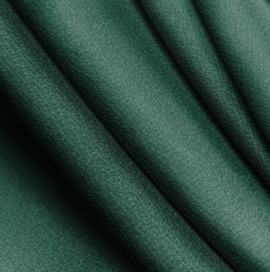 La tela base es el Crepe de Punto Elástico - Riga, compuesta por un 94% de poliéster y un 6% de elastano, con un gramaje de 180 gr/m2 y una anchura de 150 cm. El color liso impreso es un vibrante Verde Neón, cuyos componentes del CMYK son 91 para Cyan, 48 para Magenta, 70 para Yellow y 65 para Black. Este color secundario tiene un gran poder y personalidad, siendo algo así como el color de la naturaleza, evocando el frescor de la hierba o el brillo de los árboles tropicales. Además, combina perfectamente con tonos en gama de verde y azul claro, junto con tonos más cálidos como el amarillo y naranja.