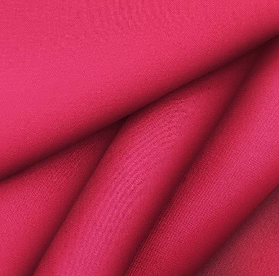 La tela base es la Gasa Transparente - Salamanca, compuesta por 100% poliéster, con un gramaje de 28 gr/m2 y un ancho de 150 cm. El color liso impreso es el Rojo Locura, con un CMYK de 0 98 72 0. Este color secundario puede ser descrito como un rojo profundo y vibrante con matices de fucsia, que combina muy bien con tonos complementarios como un verde esmeralda o azul cielo.