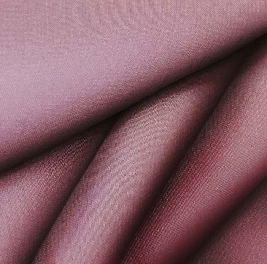 La tela base es la Gasa Transparente - Salamanca, de composición 100% poliéster y un gramaje de 28 gr/m2. El color liso impreso en esta tela es de un rojo pardo rojizo, que presenta un CMYK de 33 69 42 29. Este color se caracteriza por ser profundo, elegante y versátil, combinando especialmente bien con tonos neutros como el blanco, el negro y el gris, así como con tonos más intensos como el verde oscuro y el morado.