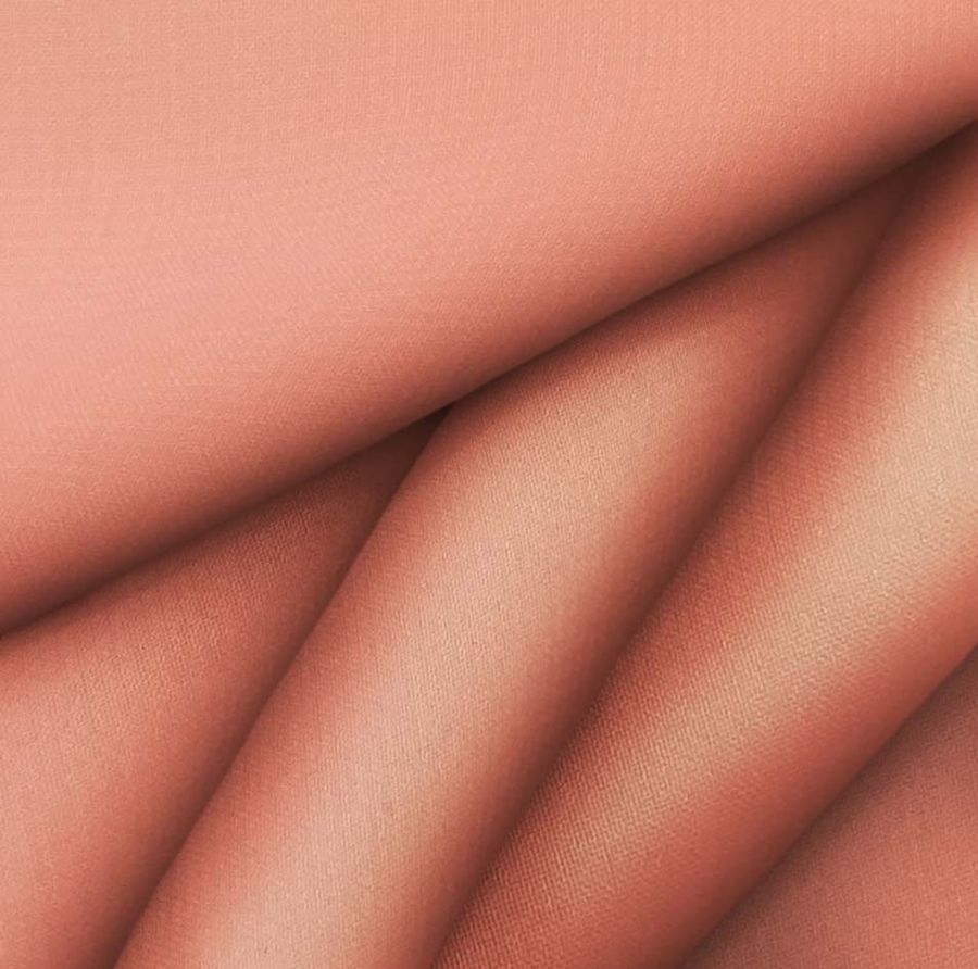 La tela base es Gasa Transparente - Salamanca de 100% POLIÉSTER, de 28 gr/m2 y 150 cm de ancho, con una tecnología de impresión de sublimación (POLIÉSTER). El color liso impreso es Rojo,Annato claro, con una combinación de tinta de Cyan: 0, Magenta: 67, Yellow: 60 y Black: 0, CMYK: 0 67 60 0. Este color presenta un tono cálido y vibrante con un toque de oxidado, lo que lo hace ideal para personalizar prendas elegantes y sofisticadas. Combina perfectamente con colores en tonos tierra como marfil, beige y dorado.