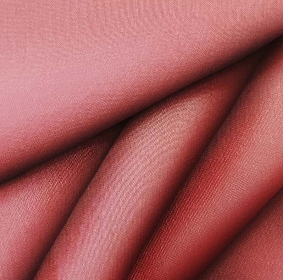 La tela base es la Gasa Transparente-Salamanca, compuesta por un 100% de POLIÉSTER con un gramaje de 28 gr/m2 y un ancho de 150 cm. El color liso impreso se presenta en tonalidades de rojo y granate claro, cuyo CMYK es de 18 80 63 6. El color secundario del rojo tiene un significado simbólico que evoca pasión, energía y vida. Técnicamente hablando, el tono granate claro se obtiene por la combinación de cian y magenta, lo que nos lleva a inferir que combina con una amplia gama de tonos, desde los marrones oscuros hasta los beiges claros. Es importante destacar que la tela está impresa con un color liso a una sola cara por impresión digital textil, lo que permite una mayor fidelidad de imagen y una precisión en los detalles.