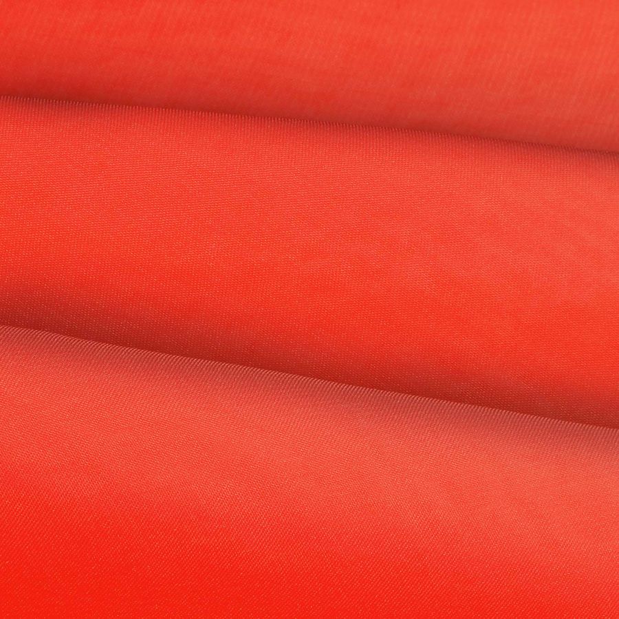 La tela base, Gasa Transparente - Salamanca, es una gasa de 100% poliéster con un gramaje de 28 gr/m2 y un ancho de 150 cm. El color liso impreso en esta tela es Naranja Lava, el cual se compone de una mezcla de tintas cian, magenta, amarillo y negro, con un CMYK de 13 94 100 3. Este color secundario destaca por su vibrante y cálido tono naranja-rojizo, que evoca energía, pasión y vitalidad. Combinada con tonos tierra y neutros, como marrones, cremas y grises, este color aporta una brillante vitalidad a la atmósfera.