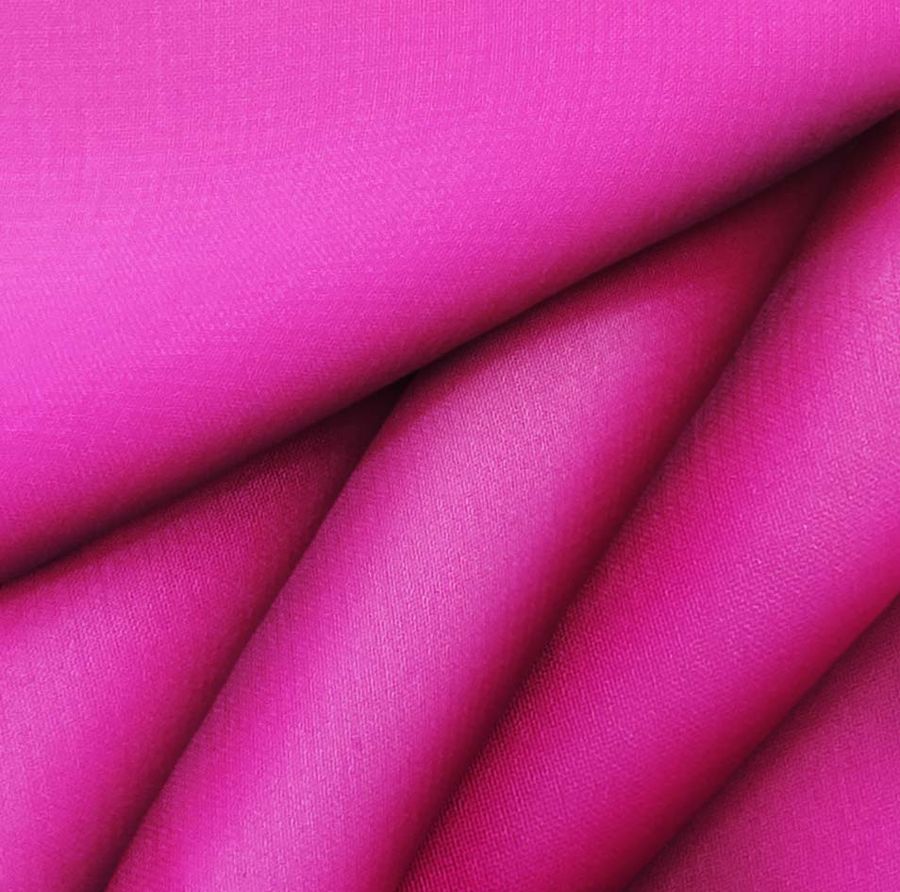 La tela base es Gasa Transparente - Salamanca, 100% poliéster, con un gramaje de 28 gr/m2 y un ancho de 150 cm. El color liso impreso es rosa fluorescente, con una combinación CMYK de 0 90 0 0. El color secundario es el magenta, que representa la pasión y el romanticismo. Combina perfectamente con tonos claros como el blanco y el beige, así como con tonos más fuertes como el negro o el azul oscuro.
