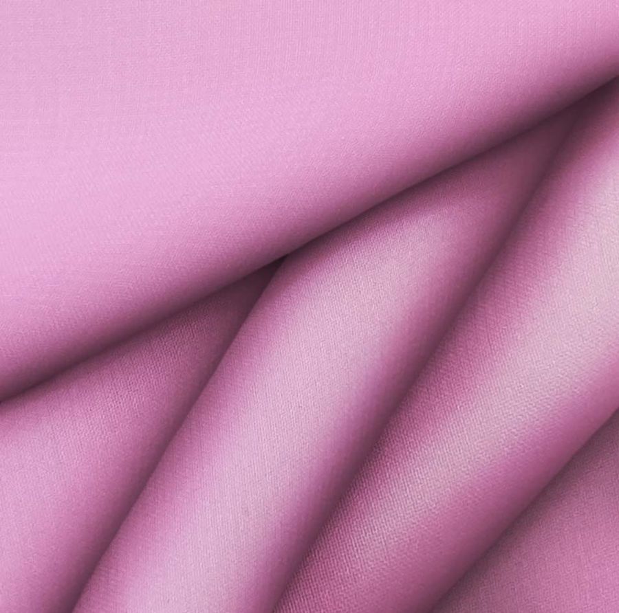 La tela base es la Gasa Transparente - Salamanca de composición 100% poliéster con un gramaje de 28 gr/m2 y ancho de 150 cm, que se presenta en color liso impreso de tonalidad rosa persa. El CMYK del color indica una presencia importante de magenta y una cantidad mínima de cyan, sin yellow ni black. El color secundario resultante es un rosa intenso, que combina perfectamente con tonos azulados y también con beige, blanco y amarillo. La tela se imprime a una sola cara por impresión digital textil.