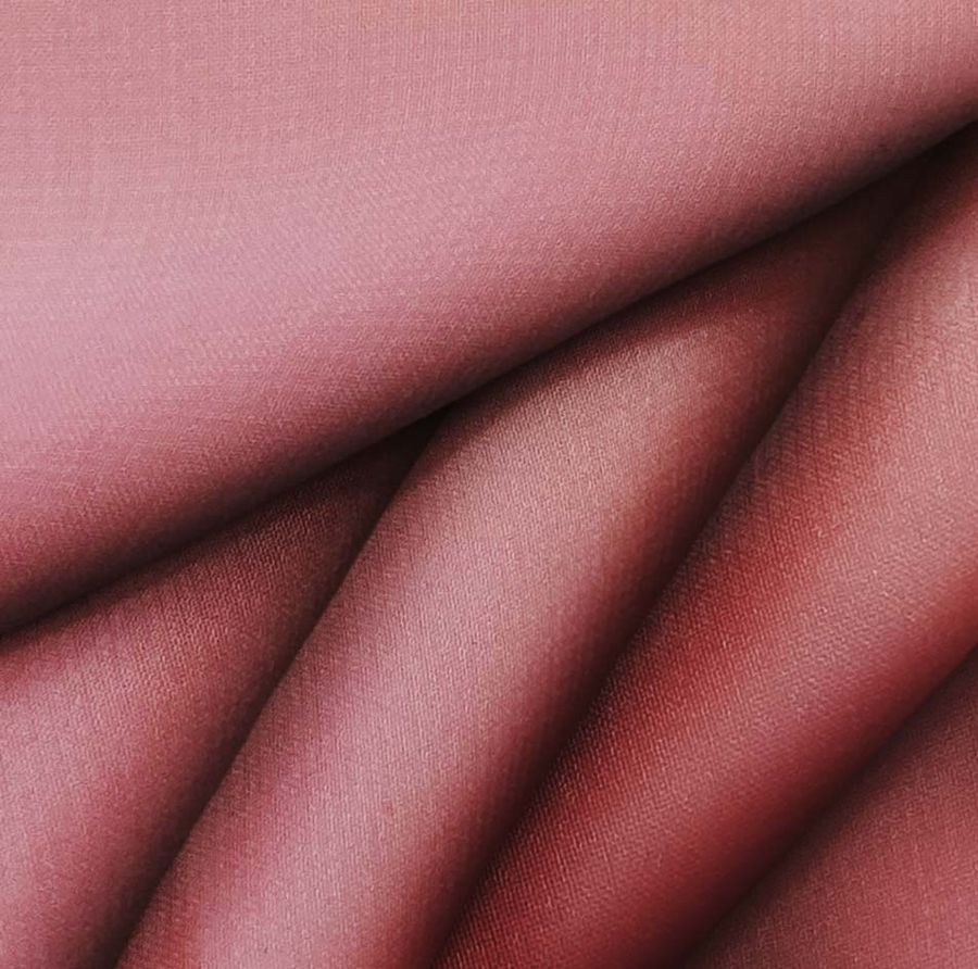 La tela base tiene una textura visual transparente, y un tacto delgado y suave. El color liso impreso se presenta en una sola cara por impresión digital textil, lo cual le otorga una gran calidad y durabilidad al tejido. La combinación del rosa con otros colores puede variar y dar lugar a nuevas armonías: por ejemplo, con blanco, puede crear un conjunto fresco y delicado, mientras que la combinación con tonos grises o beige puede generar un ambiente un poco más sobrio.