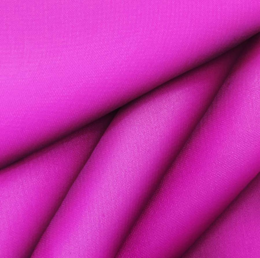 La tela base es la Gasa Transparente - Salamanca de composición 100% poliéster, con un gramaje de 28 gr/m2 y un ancho de 150 cm. El color liso impreso es el Rosa Shocking, con valores CMYK de 22 83 0 0. Este color vibrante y llamativo combina a la perfección con tonos neutros como el blanco y el gris, así como con tonalidades más atrevidas como el naranja y el rojo.
