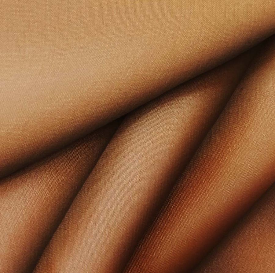 La tela base, Gasa Transparente - Salamanca, es un tejido de gasa de 100% poliéster con un gramaje de 28 gr/m2 y un ancho de 150 cm. Este tejido tiene una textura suave y visualmente transparente, con un peso ligero que lo hace perfecto para prendas de verano y lencería, vestidos, faldas, pareos y pañuelos. El color liso impreso en esta tela es un marrón oscuro con un matiz de bronce antiguo, que se consigue mediante una tecnología de impresión digital textil utilizando las tintas CMYK en los siguientes porcentajes: cian 28%, magenta 69%, yellow 93% y black 24%. Este color combina bien con tonos tierra, crema y verde oliva, y se puede agregar a estampados de animales o florales para crear un aspecto vintage.