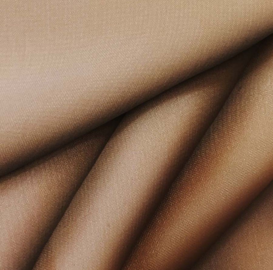 La tela base Gasa Transparente-Salamanca es de tipo gasa y está compuesta al 100% de poliéster. Su gramaje es de 28 gr/m2 en un ancho de 150 cm. El color liso impreso es marrón canela en rama, con un CMYK de 30 56 70 28. Este color secundario es cálido y terroso, dando una sensación de calma y naturalidad. Combina bien con colores tierra, como amarillos y verdes suaves, y ciertos tonos de naranja. Cabe destacar que el tejido está impreso a una sola cara por impresión digital textil.