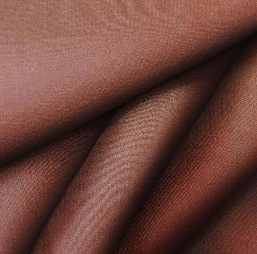 La tela base es la Gasa Transparente - Salamanca, de 100% POLIÉSTER y un peso de 28 gr/m2. El color liso impreso en la tela es de un Marrón Hígado con un CMYK de 35 82 82 51. Este color tiene una tonalidad amarronada con toques rojizos y morados que dan una apariencia profunda y rica. Se combina particularmente bien con tonos de verde oscuro, así como con otros tonos terrosos y neutros.