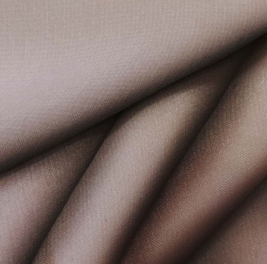 La tela base es la Gasa Transparente Salamanca, compuesta al 100% por poliéster, con un gramaje de 28 gr/m2 y una anchura de 150 cm. El color secundario impreso en el tejido es un cálido marrón nuez moscada con un CMYK de 38 51 49 37, lo que refleja una combinación equilibrada de los tonos cian, magenta, amarillo y negro. Este color da calidez a cualquier prenda y combina a la perfección con tonos neutros, blancos, verdes y dorados. La tela se imprime a una sola cara por impresión digital textil, lo que garantiza una alta calidad y precisión.