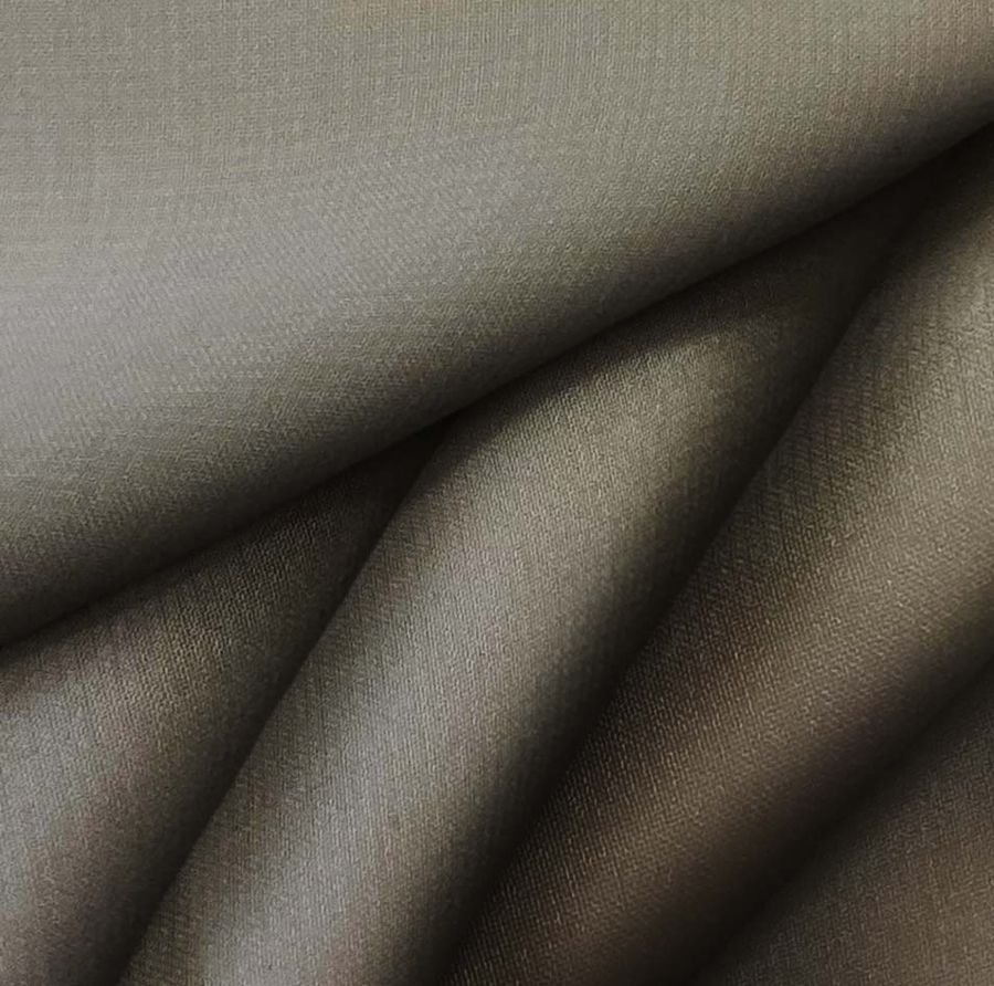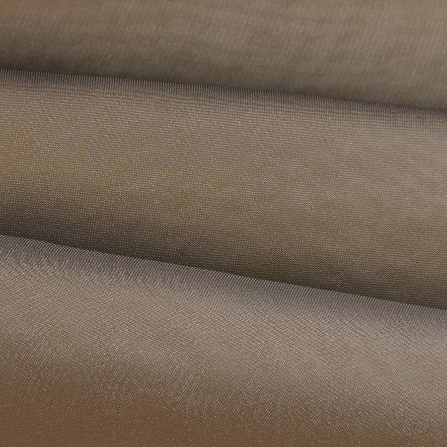 La tela base es la Gasa Transparente - Salamanca, compuesta al 100% de poliéster y con un gramaje de 28 gr/m2. El color liso impreso es de tonalidad marrón-nutria, con un CMYK de 53 53 64 55. Este tono es un color secundario cálido que se combina idealmente con una amplia gama de colores de la naturaleza, como el verde, amarillo y naranja. Destaca por su elegancia y sutileza, que se traducen en una sensación de comodidad visual y textural que se transmite en las prendas de vestir confeccionadas con esta tela.