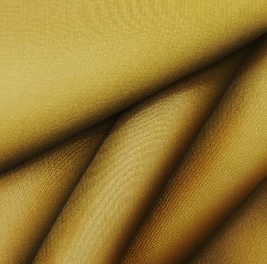 La tela base es Gasa Transparente - Salamanca, de 100% poliéster y un gramaje de 28 gr/m2 con un ancho de 150 cm. El color liso impreso es Marrón-Ocre Amarillo con una composición de tintas CMYK 28 49 100 22. Este color es una combinación de tonos tierra que transmiten calidez y elegancia. Se puede combinar con tonos nude, marrón oscuro y verde oliva.
