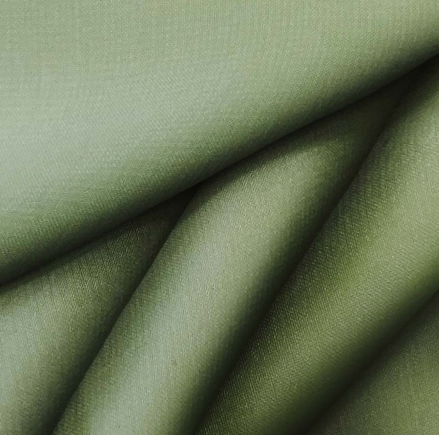 La tela base es la Gasa Transparente - Salamanca, con una composición de 100% poliéster, gramaje de 28 gr/m2, ancho de 150 cm y cuidados específicos que incluyen no utilizar blanqueador y planchar a temperatura fría. Su color liso impreso es una combinación de marrón y verde salvia, con un CMYK de 59 37 75 26, que aporta una textura visual transparente y un tacto delicado y suave. Este color combina muy bien con tonos crudos, beige y desert rose. El tejido está impreso con el color liso a una sola cara por impresión digital textil, lo que le confiere una gran calidad, nitidez y durabilidad en el color.