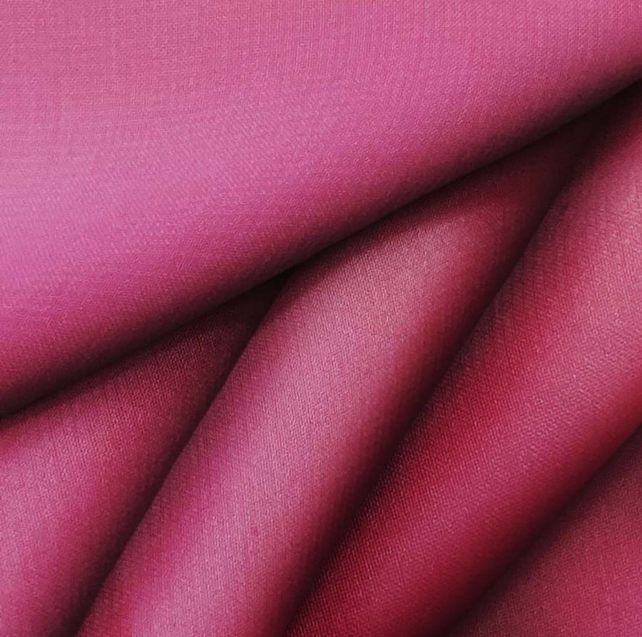 La tela base es una gasa transparente de Salamanca, compuesta en un 100% de poliéster y con un gramaje de 28 gr/m2. Su ancho es de 150 cm y está indicada para su uso en lencería, novias, vestidos, faldas, baño, pañuelos, entre otros, especialmente en temporada de verano. El color liso impreso es un vibrante morado amaranto púrpura, que se logra con una combinación de tintas de cian, magenta, amarillo y negro, para un total de 23 94 47 16 en CMYK. Este color se caracteriza por ser intenso y elegante, y combina muy bien con tonos cálidos como el dorado y el marrón.