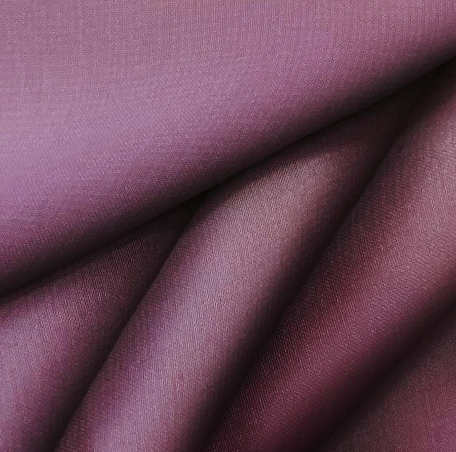 La tela base, Gasa Transparente - Salamanca, es un tejido de gasa con composición 100% poliéster y gramaje de 28 gr/m2, de ancho 150 cm, color liso impreso en Morado, Malva Antiguo con un CMYK de 47 81 41 45. El color secundario, Malva Antiguo, es un tono de morado suave con tonalidades grises y rosadas, siendo muy versátil y fácil de combinar con otros tonos tierra, rosa y grises. La tela está impresa a una sola cara mediante impresión digital textil.