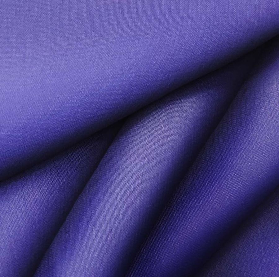 La tela base de este tejido es una Gasa Transparente de Salamanca compuesta al 100% de poliéster, con un gramaje de 28 gr/m2 y una amplia de 150 cm. El color liso impreso en este tejido es un morado con tonos de azul purpureo, con un CMYK de 97 97 5 1, que le otorga una sensación de profundidad y elegancia al tejido. Este color se combina especialmente bien con tonos de azul, gris y rosa.