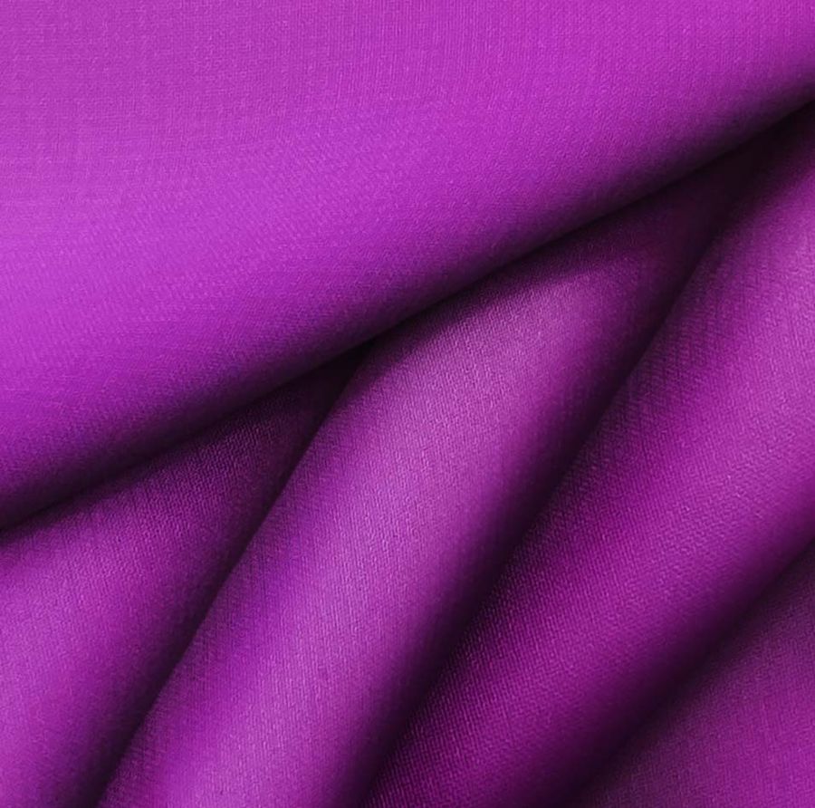 La tela base de este tejido es la Gasa Transparente - Salamanca, compuesta al 100% por poliéster y con un gramaje de 28 gr/m2. Su ancho es de 150 cm y está diseñada para aplicaciones como lencería, vestidos, faldas, pareos, pañuelos y moda infantil. Su color liso impreso es el Morado Mardi Gras, con una tinta Cyan del 60 y Magenta del 100, sin presencia de Yellow o Black en el CMYK.