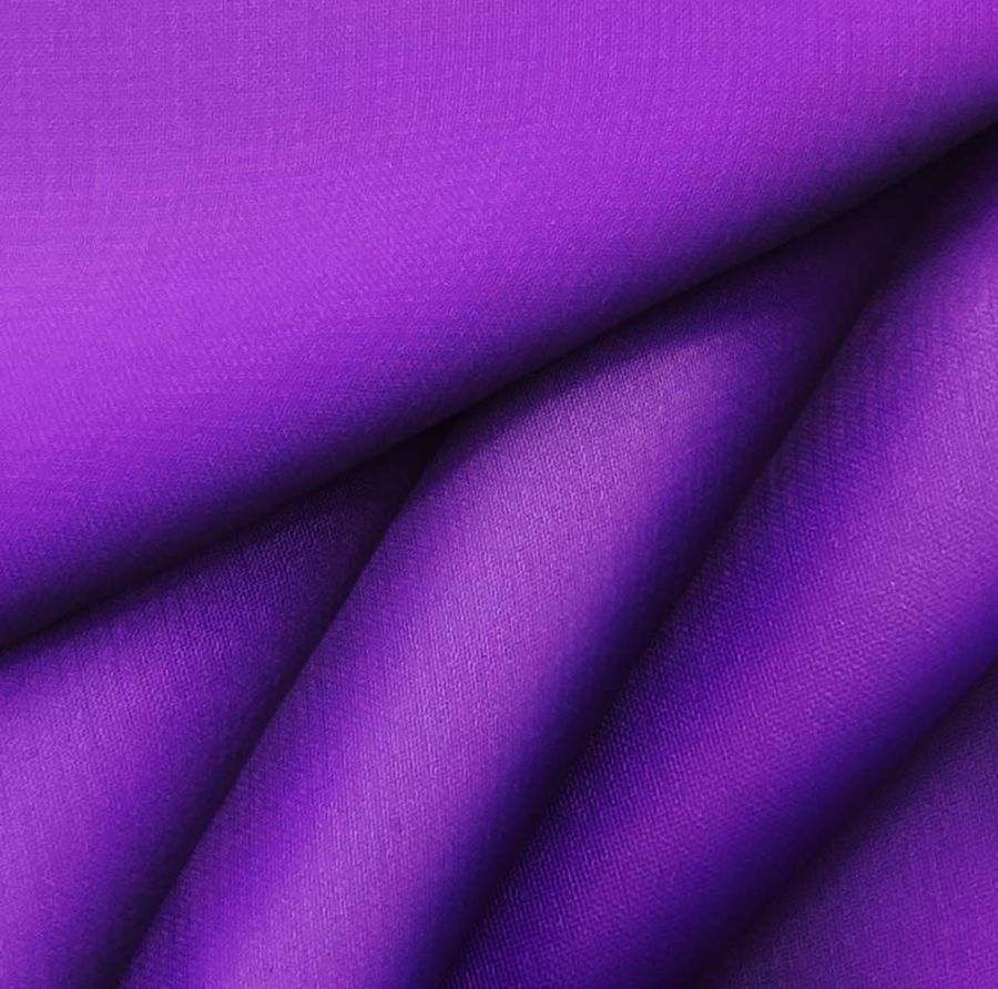 La Gasa Transparente - Salamanca es una tela de gasa de 28 gr/m2 y 150 cm de ancho, compuesta por 100% poliéster. El color liso impreso es un morado intenso con una combinación de 80% cyan y 93% magenta en su proceso de impresión CMYK. Este color secundario es un tono vivo y enérgico, que transmite una sensación de intriga y misterio. El color morado combina bien con tonos naranjas, amarillos, verdes y azules, y se puede utilizar para crear contrastes llamativos o armonías coloridas.