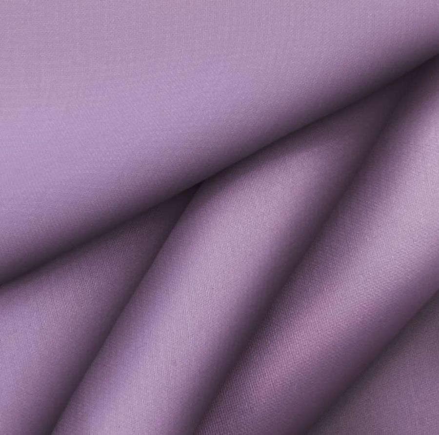 La tela base, la Gasa Transparente - Salamanca, es una delicada y transparente tela de gasa con un gramaje de 28 gr/m2 y un ancho de 150 cm, compuesta por un 100% de poliéster. Su color liso impreso es un vibrante morado-violeta chino, cuyo CMYK es 54 66 24 7. Este color secundario es una preferencia popular en la moda y refleja una personalidad enérgica y creativa. Combina con tonos oscuros, como negros y azules marinos, y también con tonos pastel suaves, como el rosa y el verde menta. La tela está impresa a una sola cara por impresión digital textil, lo que significa que no es un tejido tintado, lo que le da una mayor durabilidad.