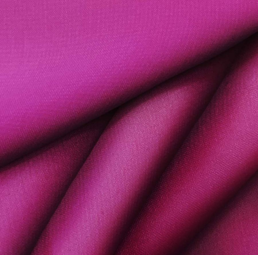 La tela base, Gasa Transparente - Salamanca, es una tela de gasa de 100% poliéster, con un gramaje de 28 gr/m2 y un ancho de 150 cm. El color liso impreso es un Morado Violeta Rojizo, con los valores de tinta CMYK de 33 100 28 25 en su composición. Este color se caracteriza por ser vibrante y lleno de vida, destacando por su intensidad emocional y su fuerza. En su combinación con otros colores, se puede destacar su atractivo con tonalidades doradas, ocres y amarillas.
