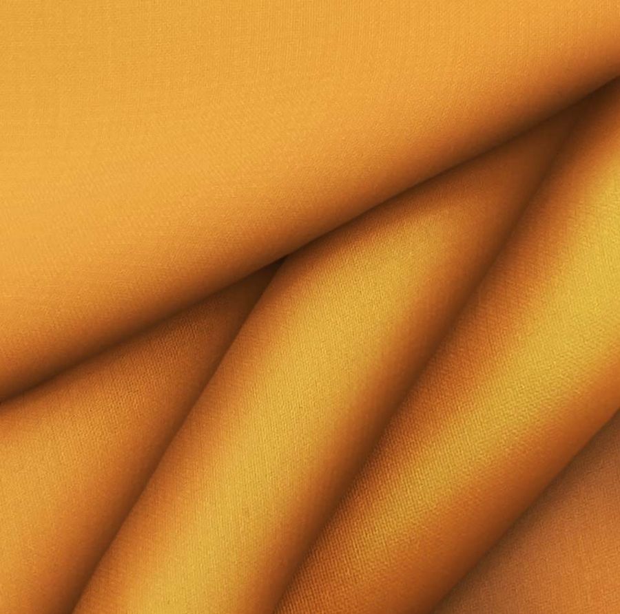 La tela base es Gasa Transparente - Salamanca, con una composición de 100% POLIÉSTER y un gramaje de 28 gr/m2. El color liso impreso es Naranja Cangrejo, con un CMYK de 0 64 91 0. Este color evoca la sensualidad y vitalidad de los cangrejos, combinando tonos anaranjados y rojizos con una pizca de amarillo. Se combina especialmente bien con tonos neutros, dorados y terrosos, creando una armonía cálida en accesorios, vestidos y lencería.