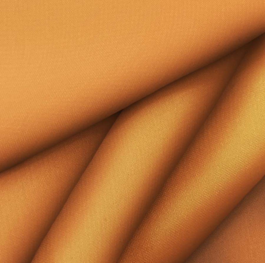 La tela base es Gasa Transparente - Salamanca, compuesta por 100% poliéster, de 28 gr/m2 y una anchura de 150 cm. El color liso impreso es Naranja,Butano, con un CMYK de 2 69 93 0. El color secundario es un tono anaranjado intenso con toques amarillos, simbolizando la energía y la vitalidad. Combina bien con colores como el blanco, el dorado y el verde oscuro. La tela está impresa a una sola cara por impresión digital textil.
