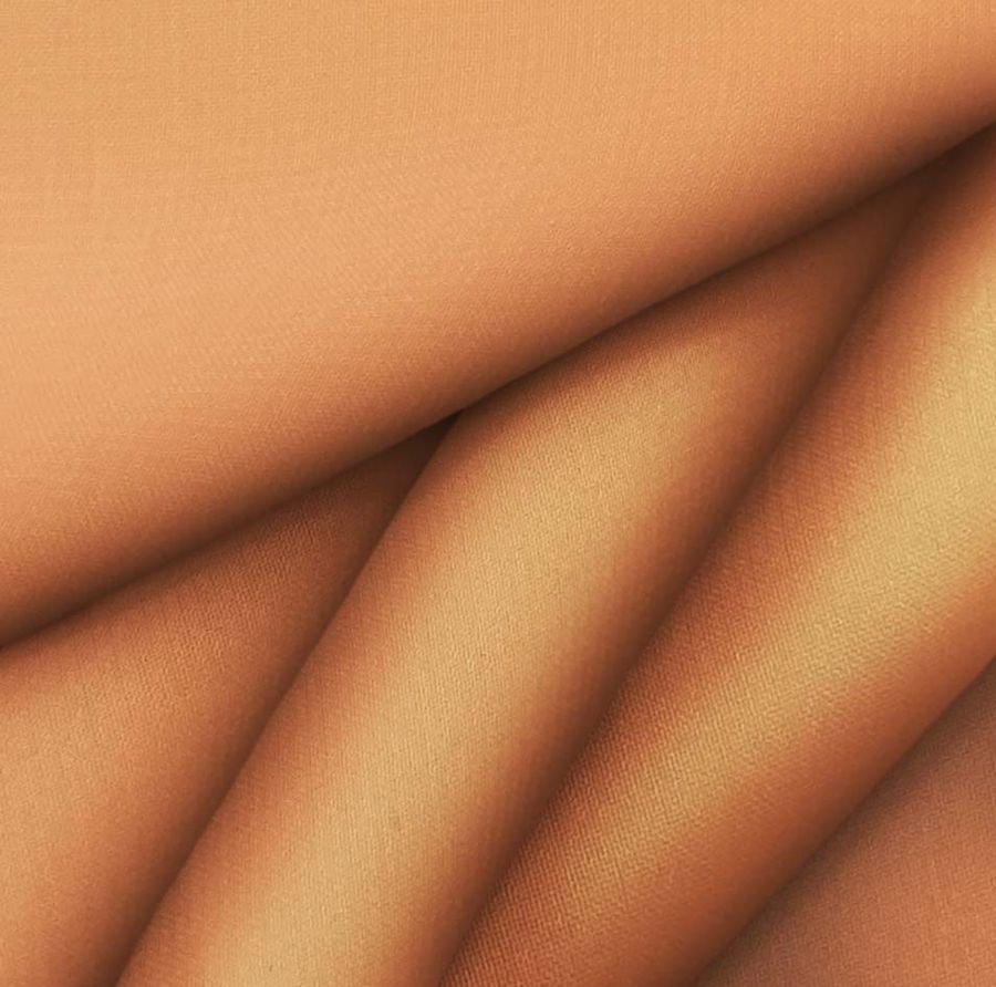 La tela base de este tejido es la Gasa Transparente de Salamanca, la cual tiene una composición de 100% poliéster y un gramaje de 28 gr/m2. El color liso impreso es un vibrante tono naranja de Portland, el cual se obtiene con una mezcla de tinta magenta (65%) y tinta yellow (78%). Este color se caracteriza por ser un tono cálido y llamativo, que puede ser combinado con otros tonos tierra y neutros para suavizar su intensidad.