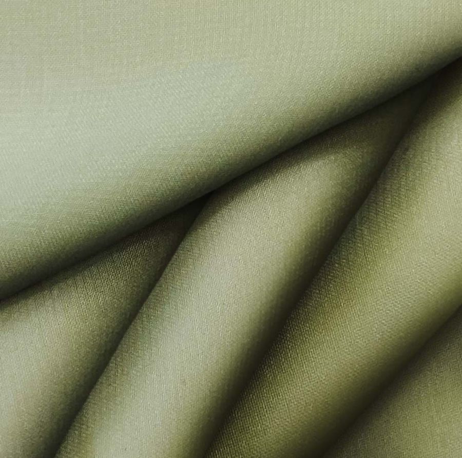 La tela base es la Gasa Transparente - Salamanca, de tipo gasa con una composición de 100% poliéster y un gramaje de 28 gr/m2. Tiene un ancho de 150 cm y es de color liso impreso en Verde Algas, con un CMYK de 48 34 69 19 y las tintas Cyan, Magenta, Yellow y Black. Este color secundario es una tonalidad de verde con una base de azul y amarillo que da como resultado un tono fresco y suave. El color combina particularmente bien con otros tonos de verde y de azul, como los turquesas y aguamarinas.
