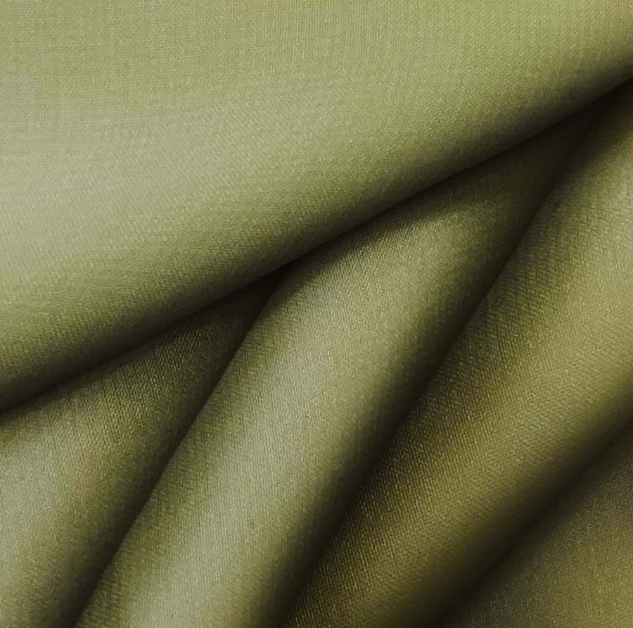 La tela base es Gasa Transparente - Salamanca, de composición 100% poliéster, con un gramaje de 28 gr/m2 y un ancho de 150 cm. El color impreso es Verde Oliva Oscuro, con un CMYK de 52 42 86 35. Es un color cálido y natural, que simboliza la armonía con la naturaleza y transmite tranquilidad. Combina espectacularmente con tonos tierra, beige, marrón o gris oscuro.