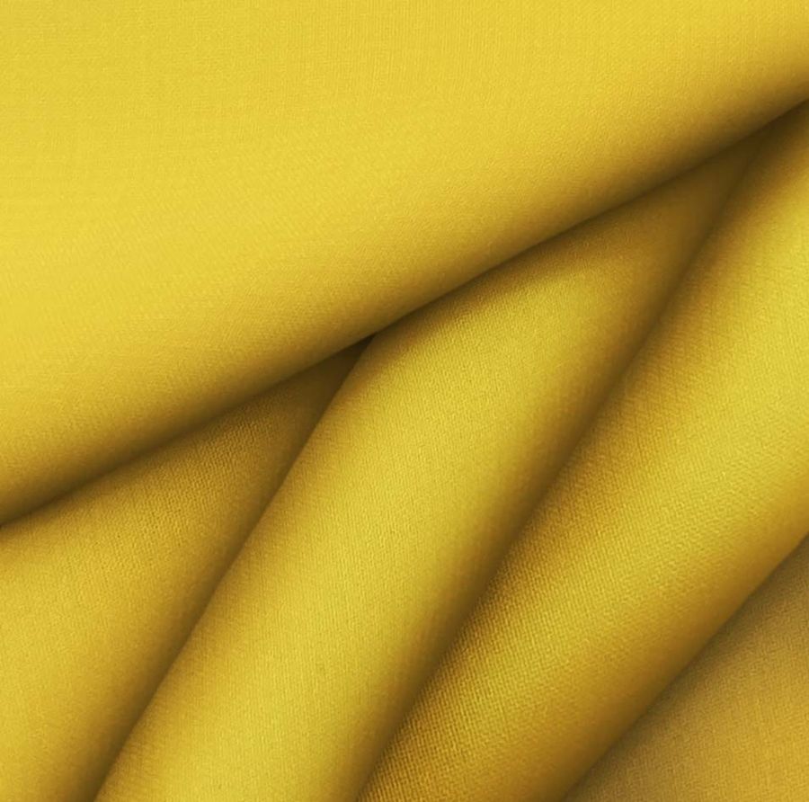 La tela base, Gasa Transparente - Salamanca, está compuesta completamente de poliéster con un gramaje de 28 gr/m2 y un ancho de 150 cm. El color liso impreso en la tela es un vibrante amarillo jirafa, con una combinación de tintas Cyan: 2, Magenta: 36, Yellow: 93 y Black: 0, que dan como resultado un CMYK de 2 36 93 0. Este color es ideal para proyectos veraniegos y se combina bien con tonos neutros, como el blanco y el negro, así como con tonos tierra, como marrones y beige.