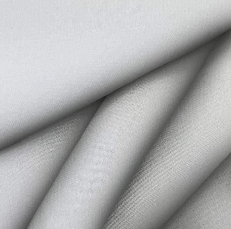 La tela base de esta prenda es la Gasa Transparente - Salamanca, 100% POLIÉSTER, con un gramaje de 28 gr/m2 y un ancho de 150 cm. El color liso impreso es Gris Ceniza con un CMYK de 23 17 18 1. Este color es un gris suave con tonalidades cálidas, lo que lo hace ideal para combinar con colores fríos como el azul o el verde.