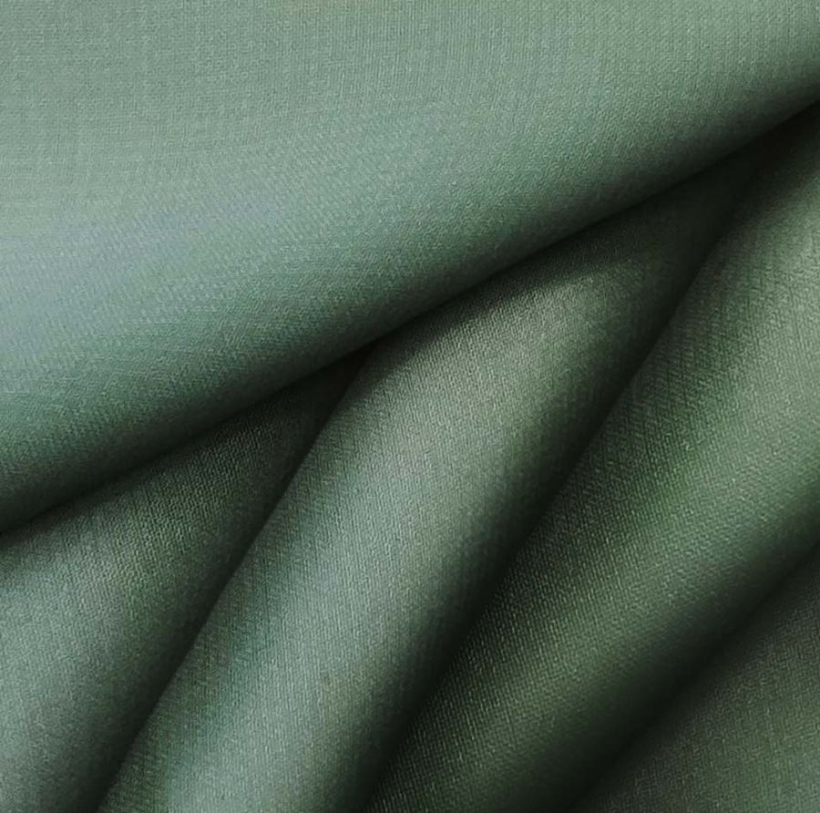 La tela base es Gasa Transparente - Salamanca, 100% poliéster con un gramaje de 28 gr/m2. El color liso impreso es Verde Espinaca con un CMYK de 69 44 68 41, el cual presenta un tono intenso y brillante que se puede combinar de manera atractiva con tonos neutros como el blanco, beige o gris. El tejido está impreso con el color liso a una sola cara por impresión digital textil, lo que garantiza una alta calidad y resolución en la imagen impresa. La tela base es visualmente transparente y delgada, con una textura suave al tacto.