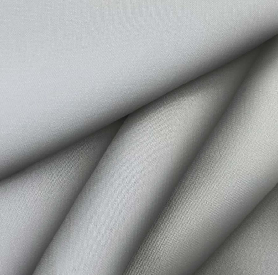 La tela Gasa Transparente - Salamanca de 100% POLIÉSTER, con un gramaje de 28 gr/m2 y un ancho de 150 cm, tiene un color liso impreso en gris oscuro medio, con una combinación de tintas CMYK de 36 28 28 7, donde destaca el bajo porcentaje de tinta negra. Este color secundario, simboliza el equilibrio entre la neutralidad del gris y la profundidad del negro, ofreciendo una sensación sobria y elegante, que combina especialmente bien con tonos claros, como los pasteles, los crudos y los blancos.