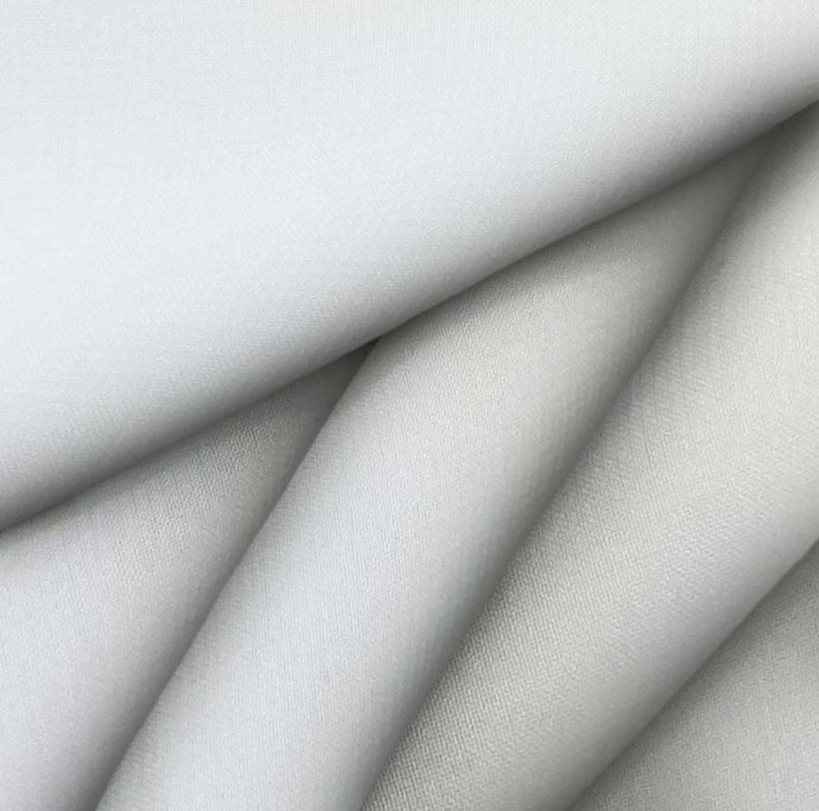 La tela base es la Gasa Transparente - Salamanca, compuesta por 100% POLIÉSTER, con un gramaje de 28 gr/m2 y un ancho de 150 cm. El color liso impreso es Gris Humo Blanco, con un CMYK de 5 4 4 0. El color secundario, Gris Humo Blanco, se caracteriza por ser sobrio y elegante, con un matiz de gris cálido que aporta un toque de sofisticación. Combina perfectamente con tonos tierra, beiges y blancos, así como con una amplia gama de colores fríos, como el azul o el verde.