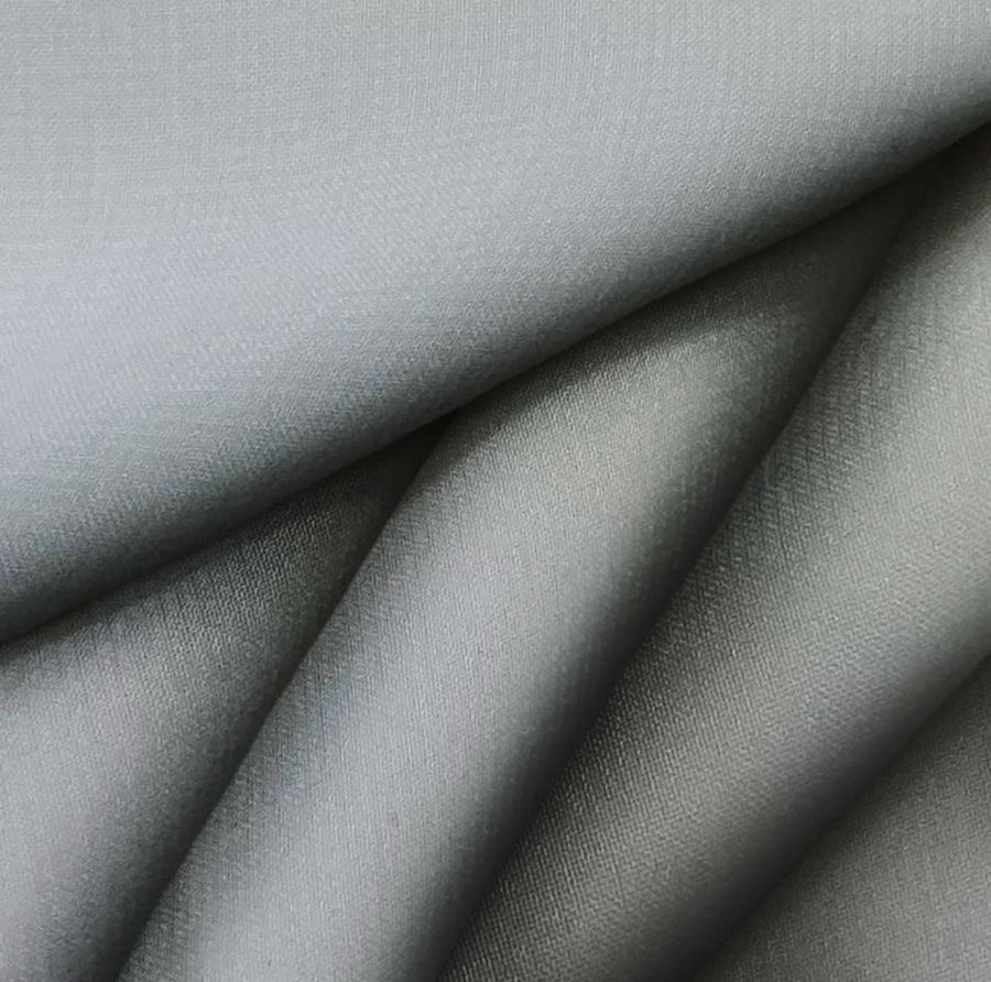 La tela base es la Gasa Transparente - Salamanca. Su color liso impreso es Gris, trolley, obtenido a través de la combinación de las tintas Cyan (49), Magenta (39), Yellow (38) y Black (20) en un proceso de impresión digital textil a una sola cara. La tonalidad de este color combina perfectamente con tonos blancos, negros y azules, proporcionando un estilo elegante y sofisticado.