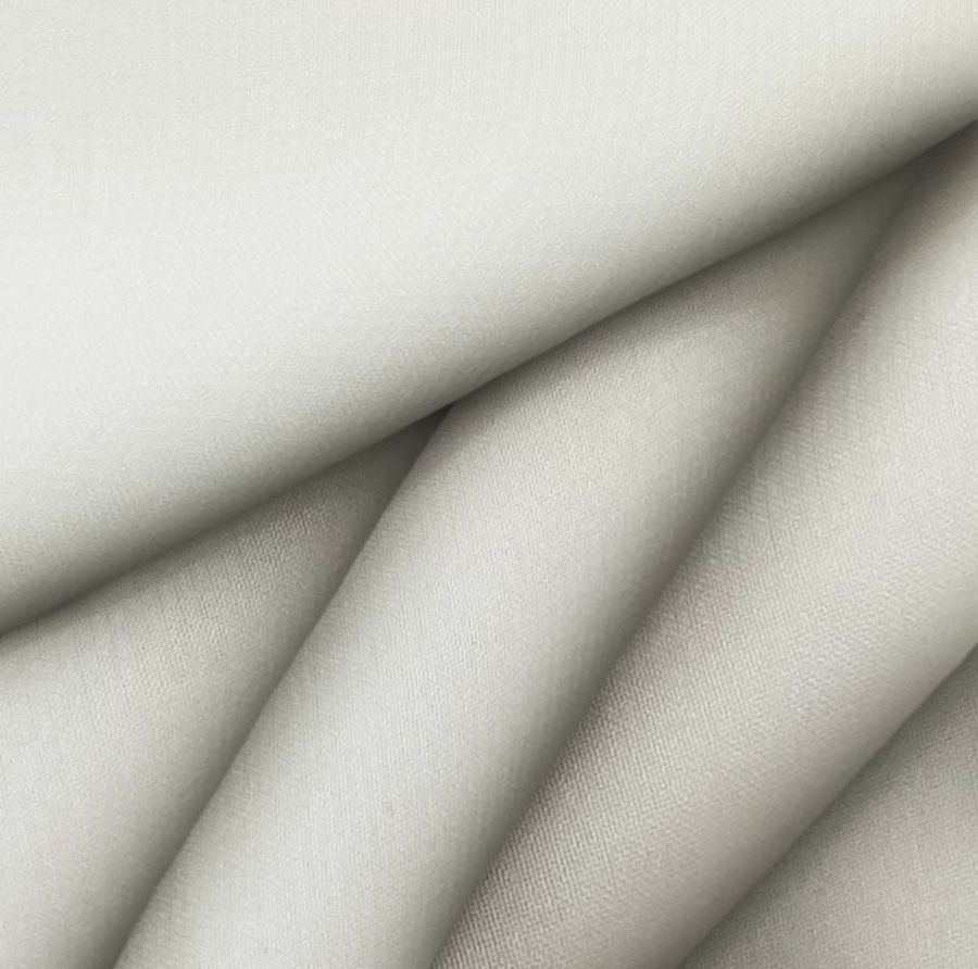 La tela base es la Gasa Transparente - Salamanca, de composición 100% poliéster y con un gramaje de 28 gr/m2. El color liso impreso es Blanco/Cáscara de huevo, con un CMYK de 7 7 19 0, lo que le otorga un tono suave y elegante. Este color secundario tiene una cualidad emblemática, pues representa la protección y el renacer, además de simbolizar la pureza y la claridad. Combina con tonos más fuertes como el gris y el negro, y con otros tonos suaves como el rosa pastel y el azul claro.
