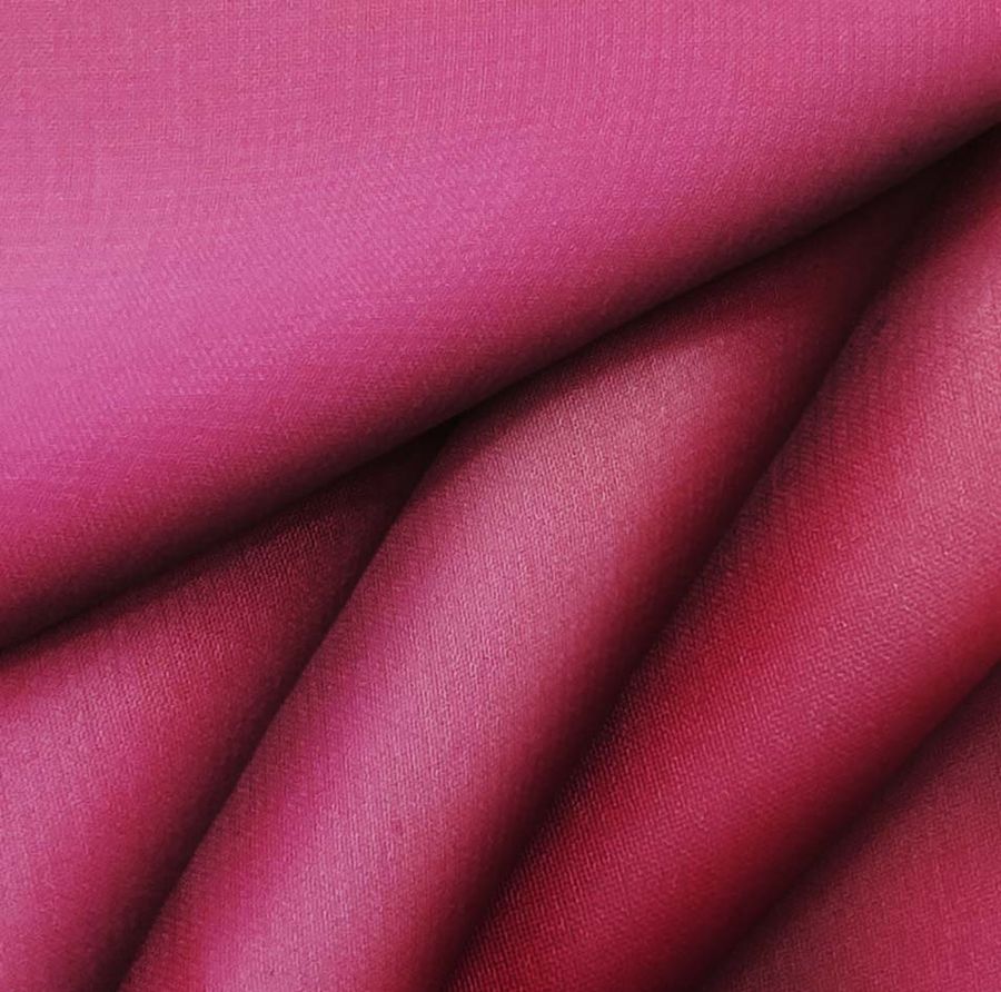 La tela base es Gasa Transparente - Salamanca, con un gramaje de 28 gr/m2 y una anchura de 150 cm. El color liso impreso que se puede obtener en esta tela es de un tono Rojo Granate con un CMYK de 23 98 52 17. Este color secundario se caracteriza por ser profundo, intenso y elegante, lo que le confiere un aire de sofisticación. Se compone de un rojo tirando a granate profundo, mate y densamente saturado. Combinado con otros colores como el negro, el gris o el blanco, es ideal para ocasiones especiales y formales.